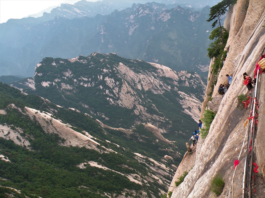Part of the attractions you get while hiking Huashan Mountain is undoubtedly the dangerous plank walk which draws in all sorts of daredevil visitors. It has been ‘conquered’ hundreds times by Chinese visitors, (actually all families) and overseas travellers, old and young trying to face the fear of heights. The organisation is a bit chaotic and slow, but the reward is unbeatable and the experience unforgettable.