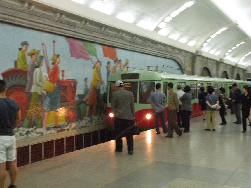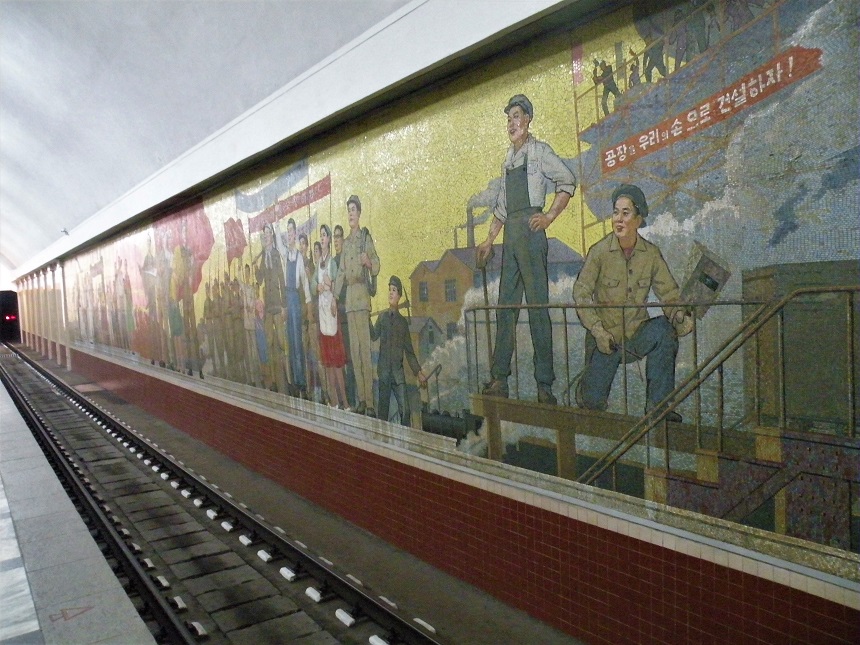 The metro is completely underground. Its design was based on metro networks in other communist countries, particularly the Moscow Metro. Both networks share many characteristics, such as the great depth of the lines (100 meters plus) and the large distance between stations. Another common feature is the Socialist realist art that can be found in the stations, such as mosaics, murals, and statues.