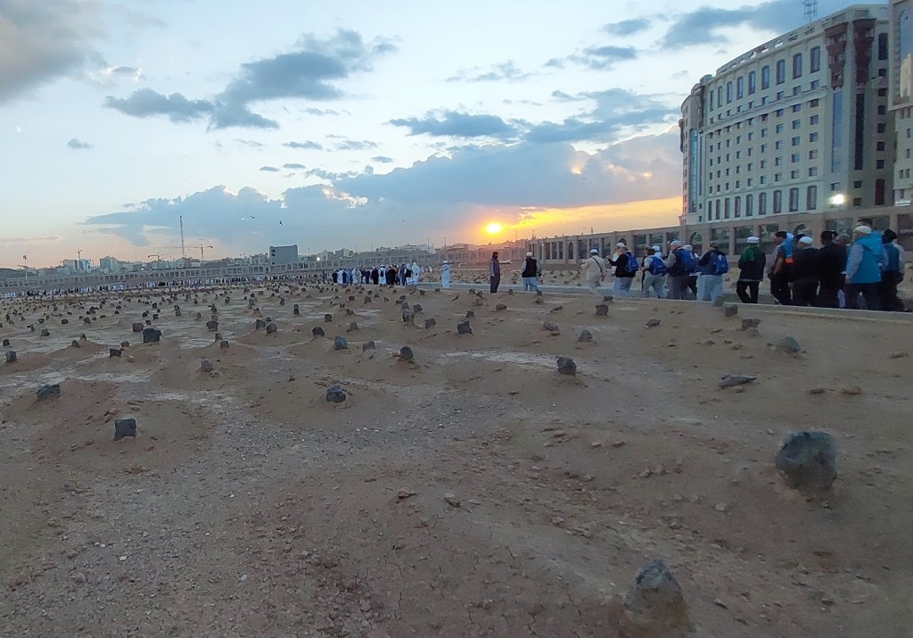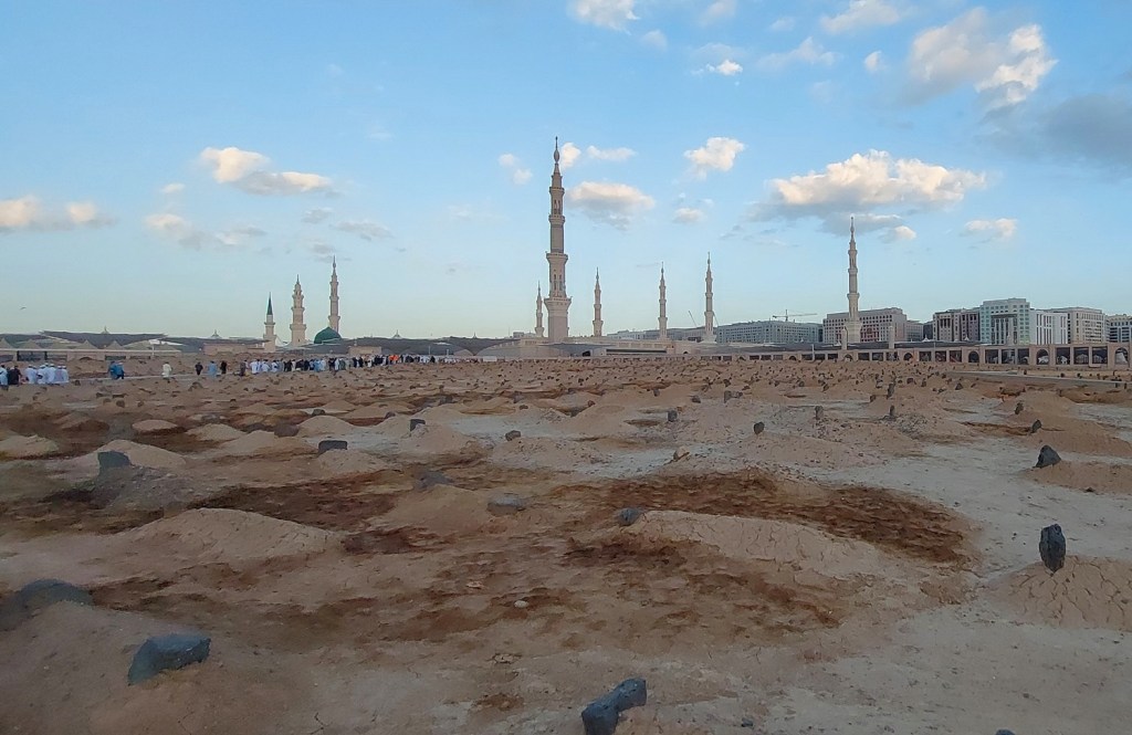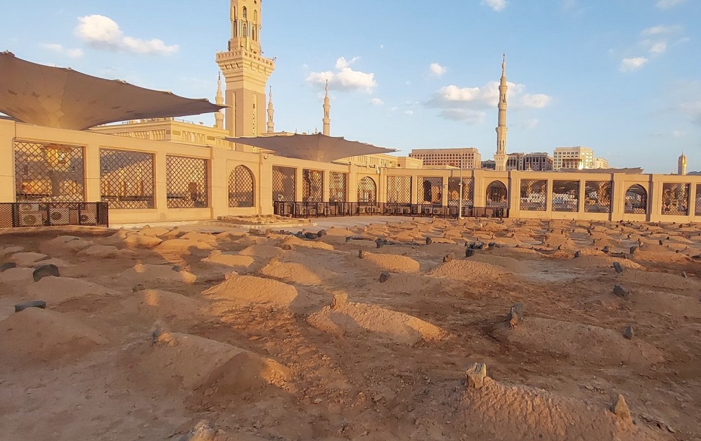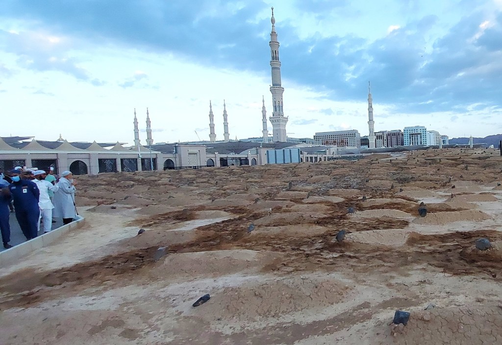 Jannatul Baqi (Arabic: جنة البقيع; “Garden of Baqi”), also known as Baqi al-Gharqad (Arabic: بقیع الغرقد; “Baqi of the Boxthorn”) is the main cemetery in Madinah, Saudi Arabia. It contains the graves of many prominent members of Mohammed’s family, as well as graves belonging to the Sahaba, Tabi’in, and many prominent scholars.