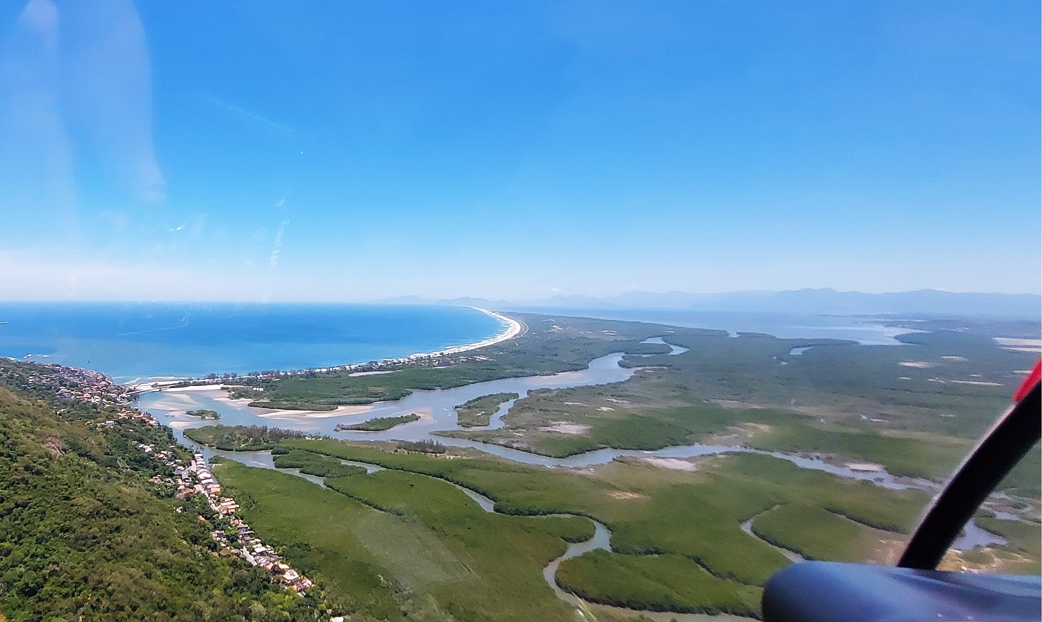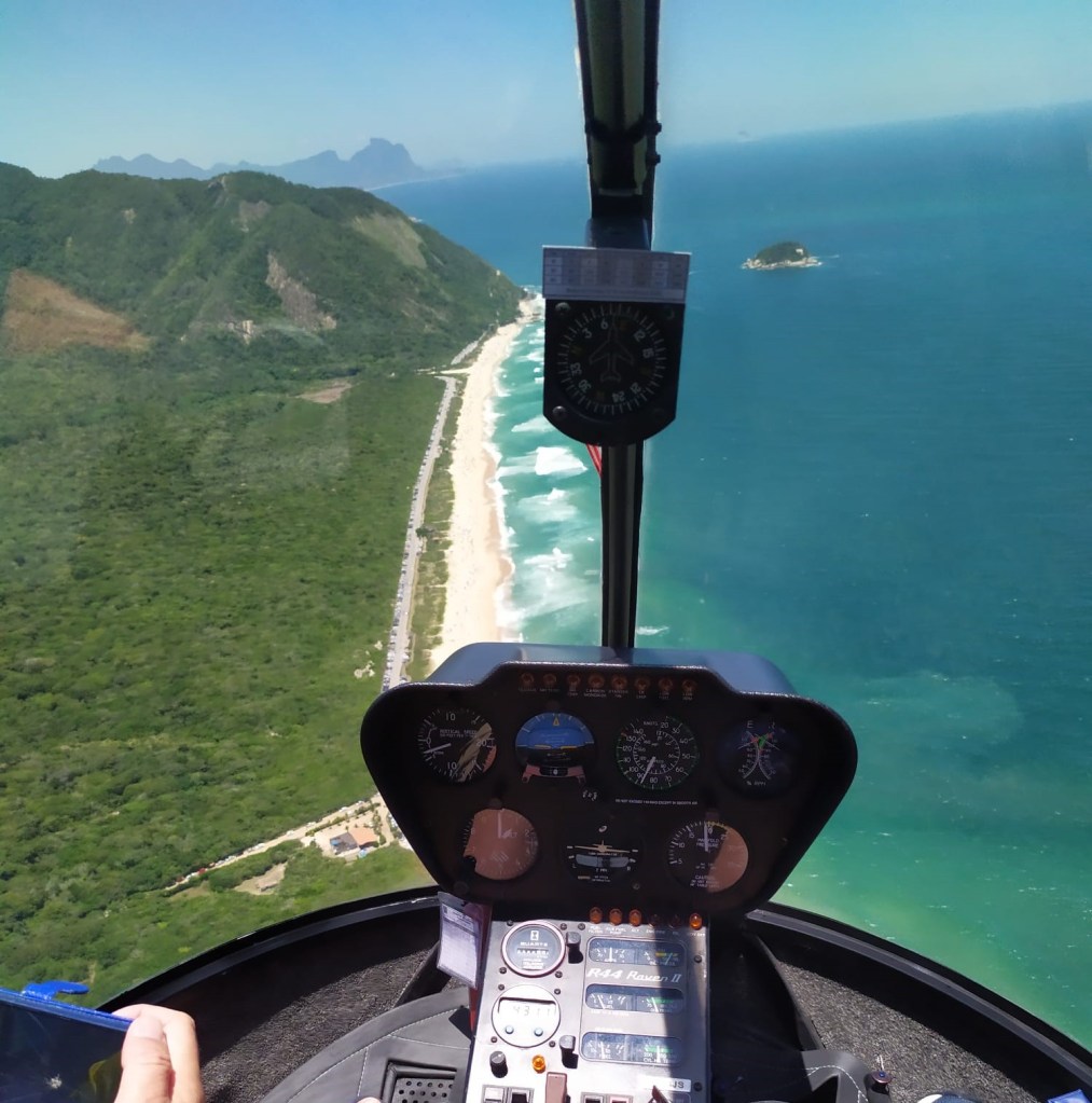 We lifted off from the base in Recreio dos Bandeirantes. On the ground, Recreio feels like Rio’s “Wild West”—it’s newer, more spaced out, and dominated by surfers and local families. From the air, you see the massive Praia da Reserva, a protected stretch of sand where the city’s urban sprawl hasn’t yet touched the Atlantic. As we banked East, we passed over Barra da Tijuca. Stretching for 18 kilometers, it looks like an endless ribbon of white. From the helicopter, you notice the lack of high-rises blocking the sun—a sharp contrast to the dense forests of towers we were about to encounter in the South Zone.