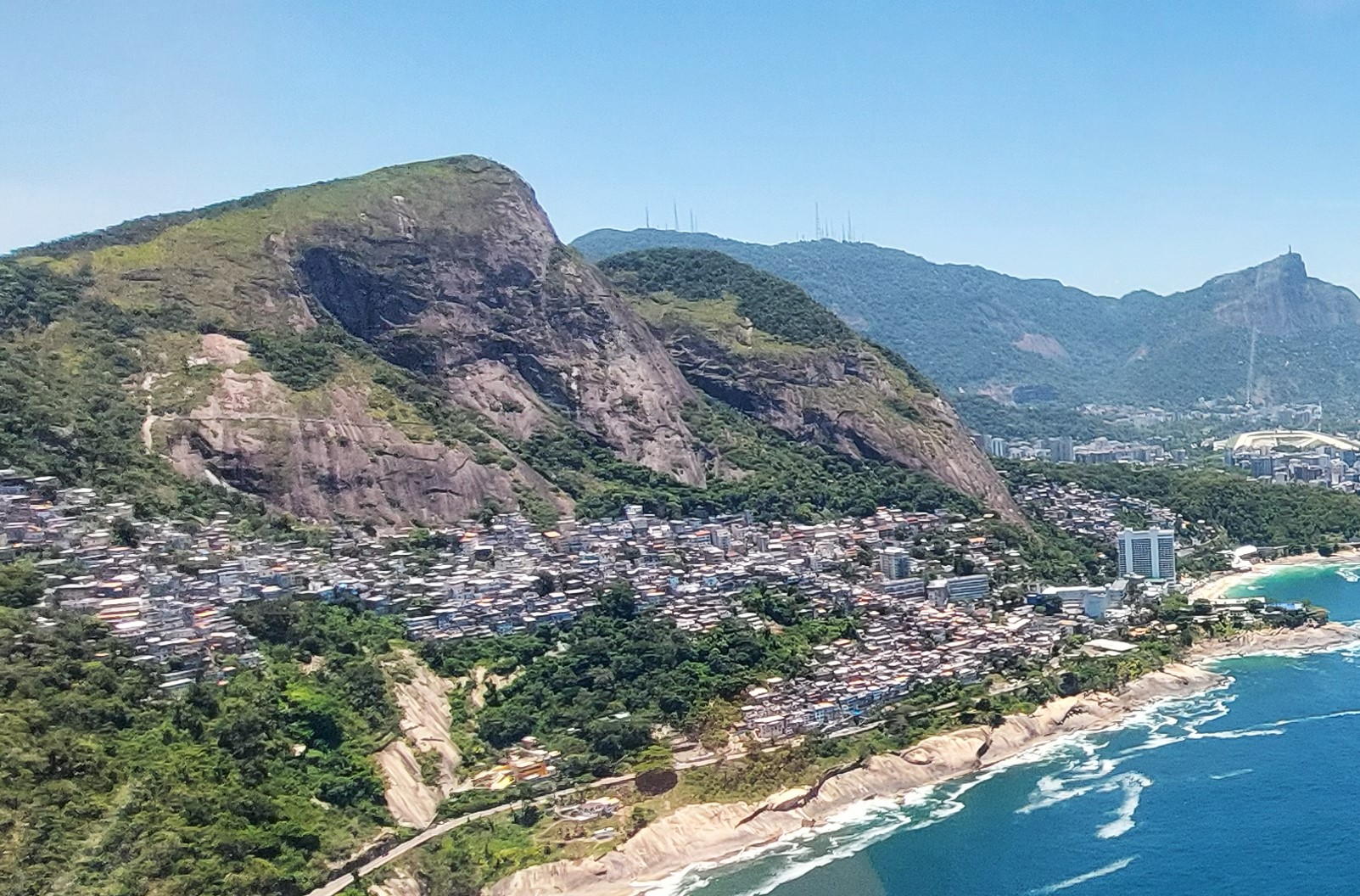 As the helicopter banks toward the mountains, the perspective shifts from stone history to living breathing complexity. Looking down into the favelas, the “bird’s-eye” view reveals a world the tourist board doesn’t show. You see the tangled “spaghetti” of illegal electrical wires, the narrow alleys (becos) where no car can pass, and the rooftop water tanks that define the skyline of the poor. But the silence of the helicopter is deceptive. This is a place of constant tension. In recent months, these hills have been the site of intense “Operações Policiais” (police raids). From above, you realize how difficult these operations are; the police use armored vehicles (Caveirões) to try and navigate the steep, narrow climbs while being watched from every rooftop. You aren’t just looking at houses; you’re looking at a strategic battleground where thousands of people are just trying to live their lives, hang their laundry, and raise children amidst the “war of the hills.